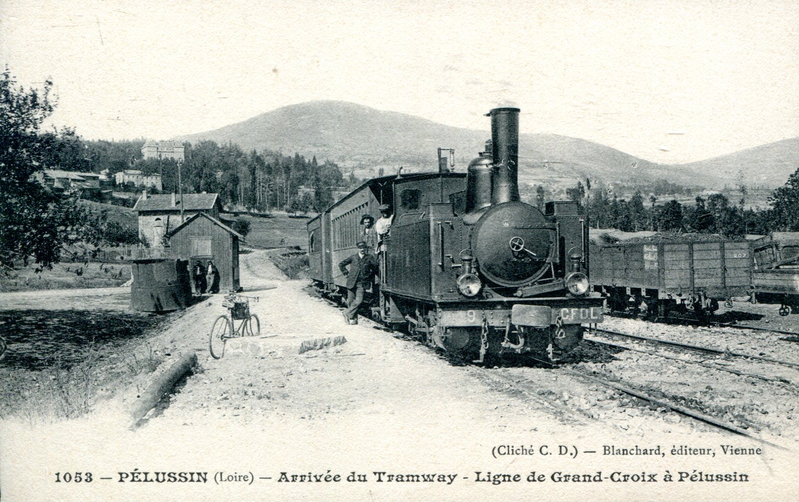 AK Pelussin Loire Arrivee du Tramway Ligne de Grand Croix