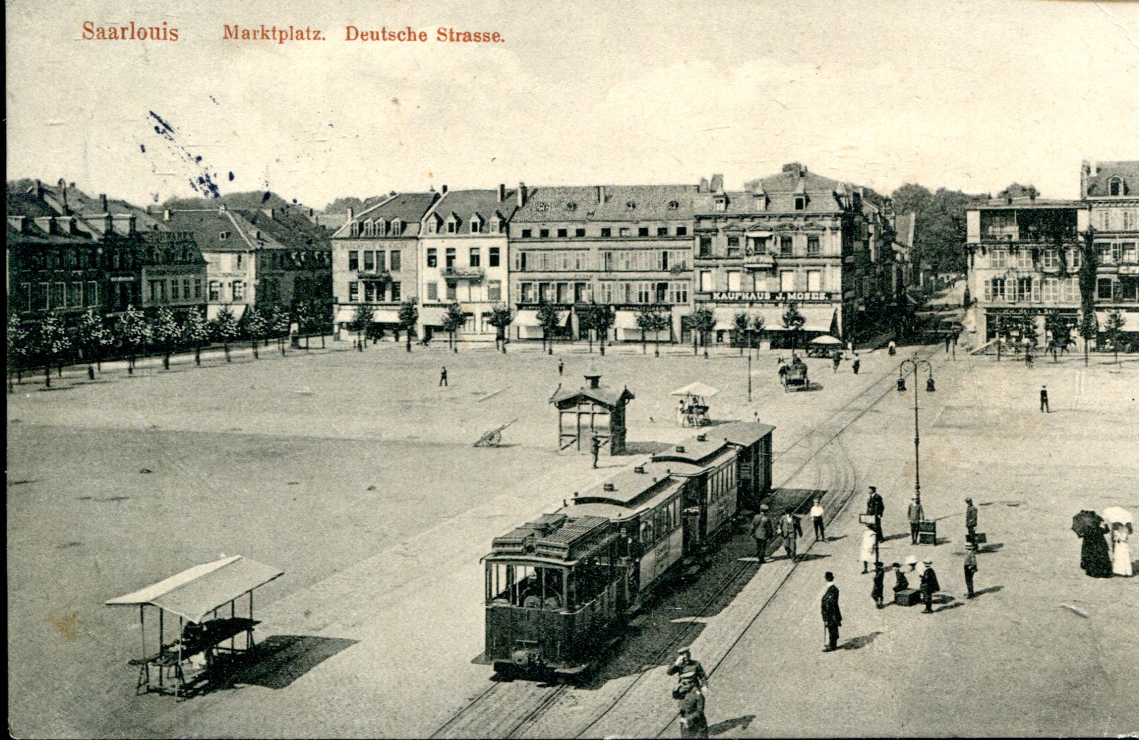 AK Saarlouis Marktplatz Deutsche Strasse Straßenbahn