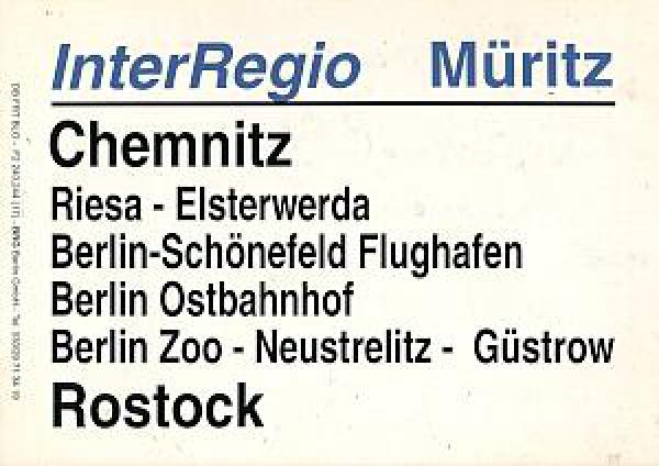 Zuglaufschild Inter Regio Müritz Chemnitz - Rostock