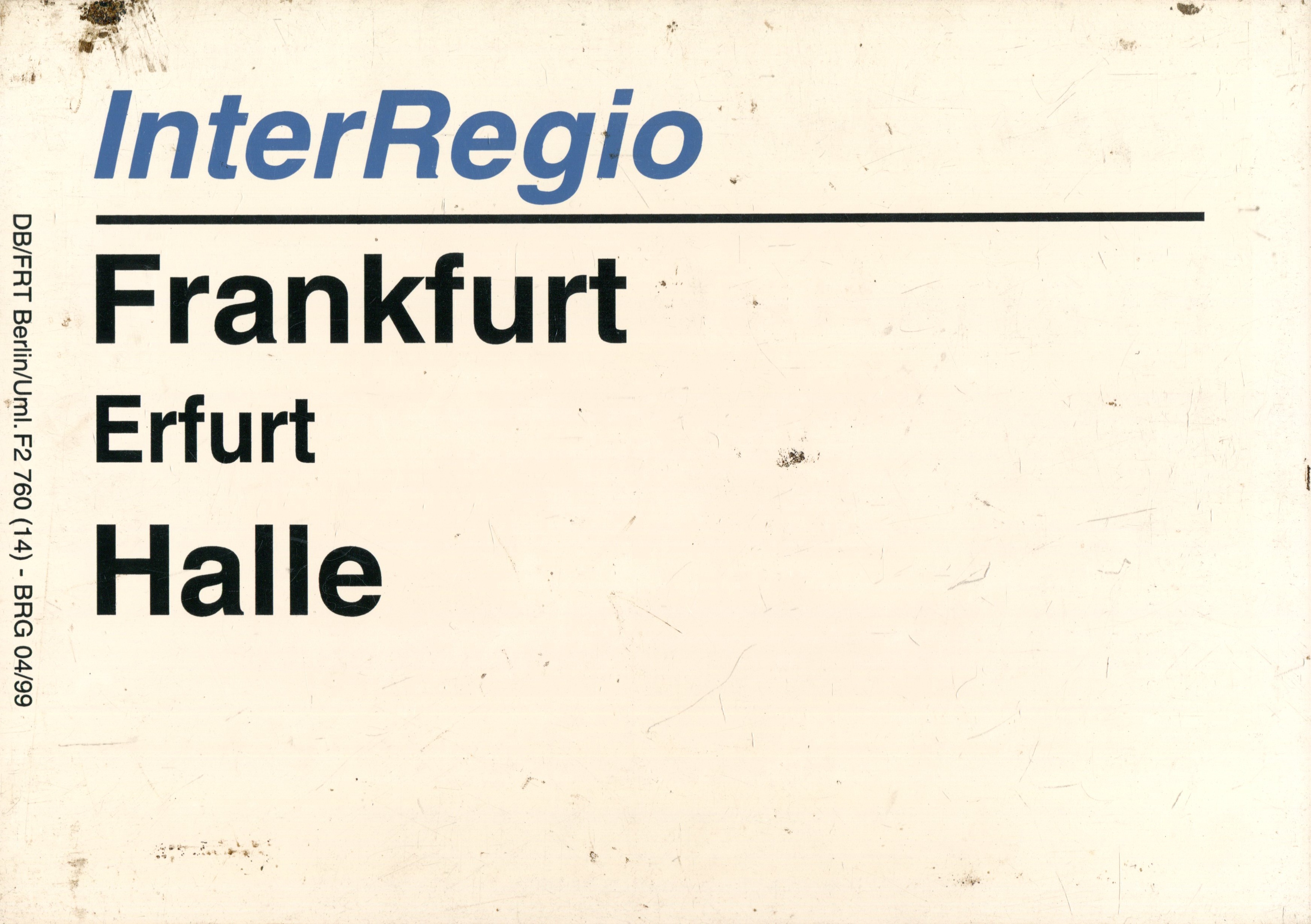 Zuglaufschild Inter Regio Frankfurt – Erfurt – Halle