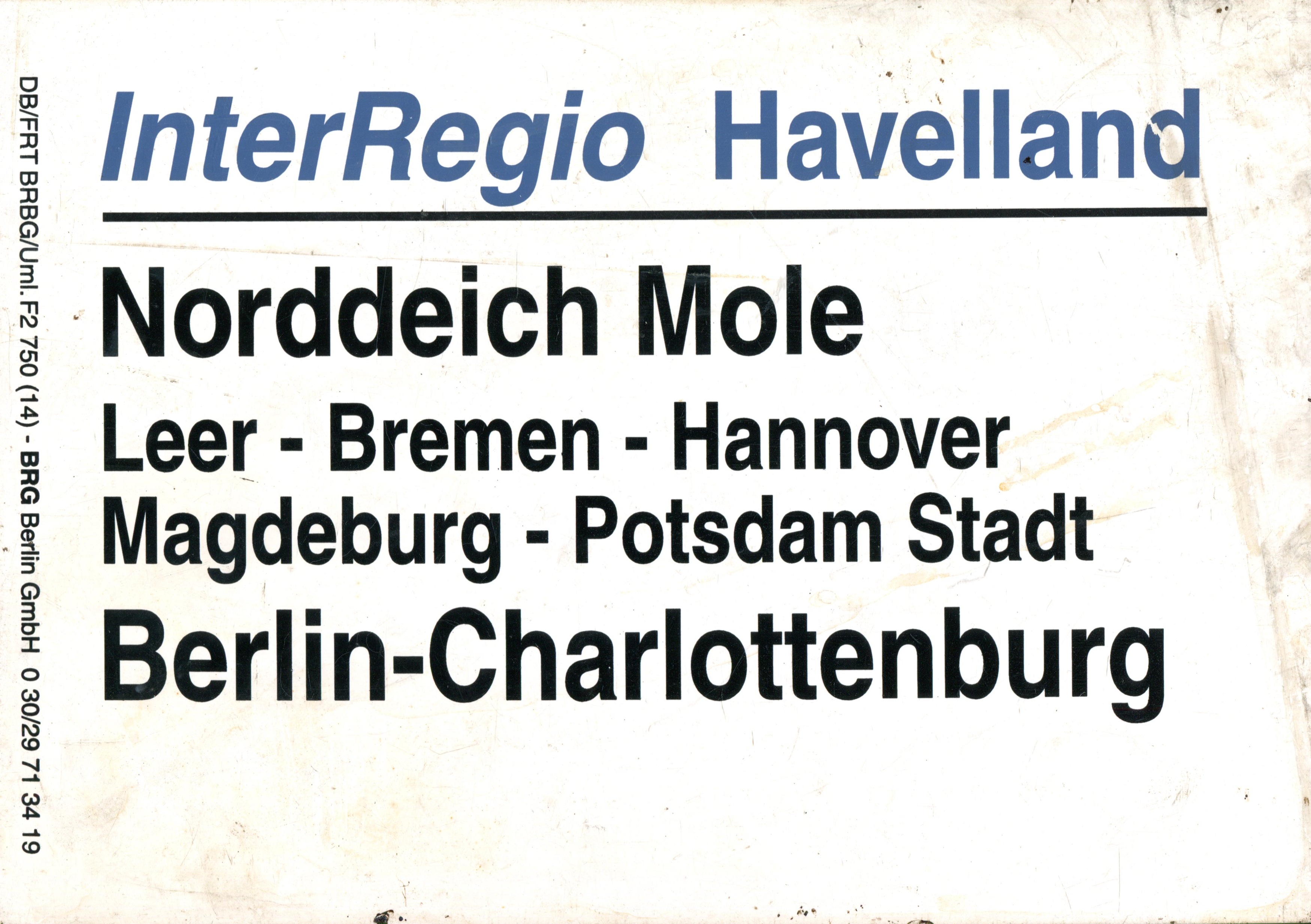 Zuglaufschild Inter Regio Havelland Norddeich Mole – Berlin Charlottenburg