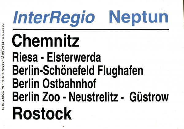 Zuglaufschild Inter Regio Neptun Chemnitz – Berlin Zoo - Rostock