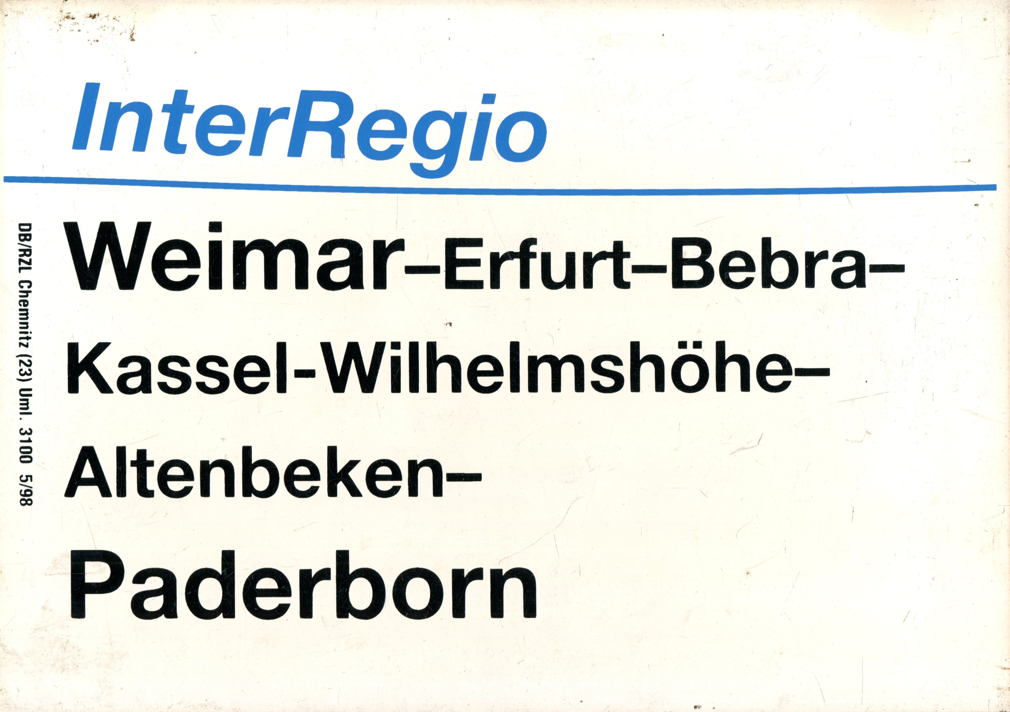 Zuglaufschild Inter Regio Weimar – Paderborn