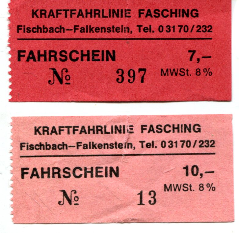 2 Fahrscheine Kraftfahrlinie Fasching Fischbach – Falkenstein