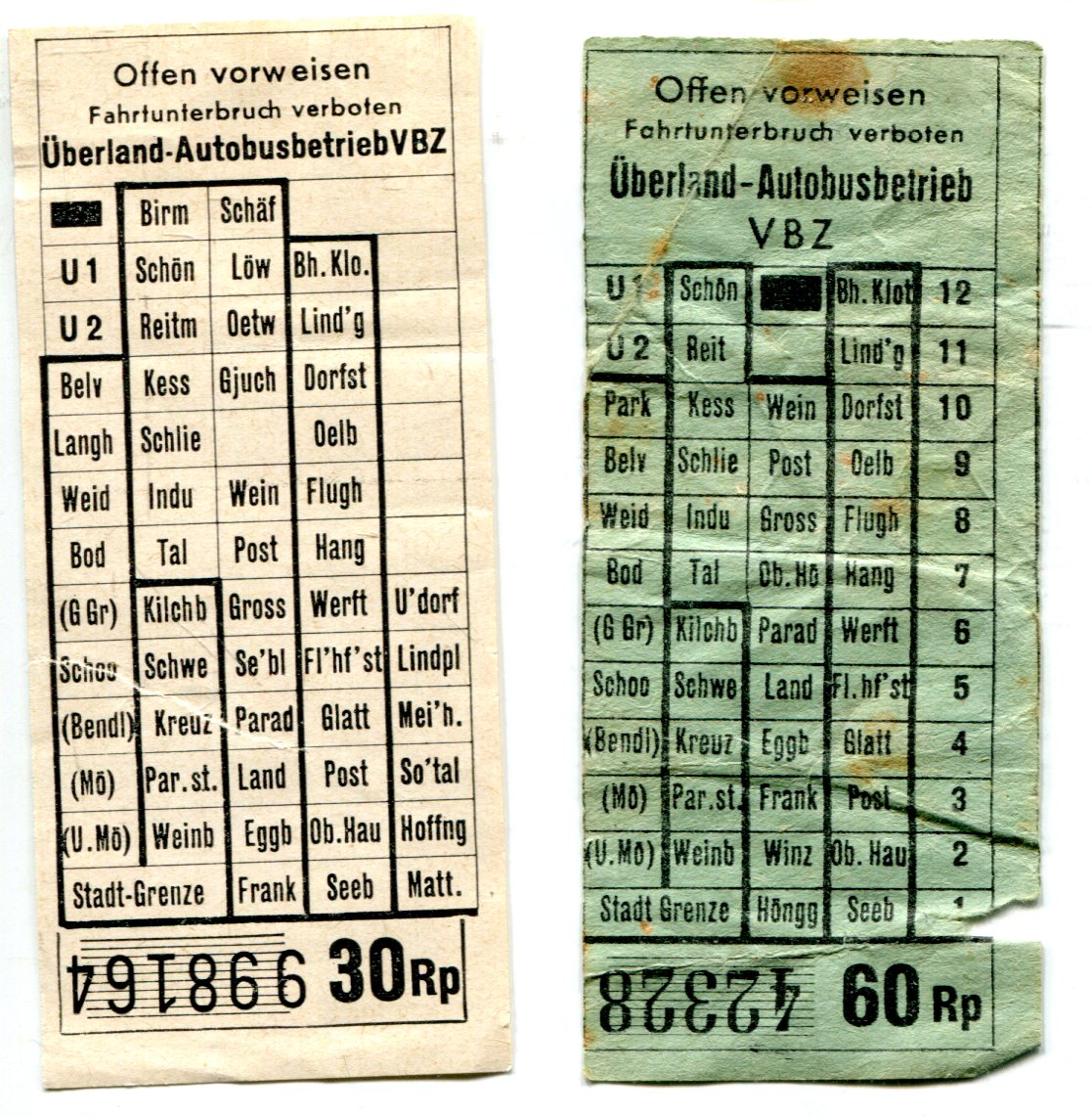 2 Fahrscheine Überland Autobusbetrieb VBZ