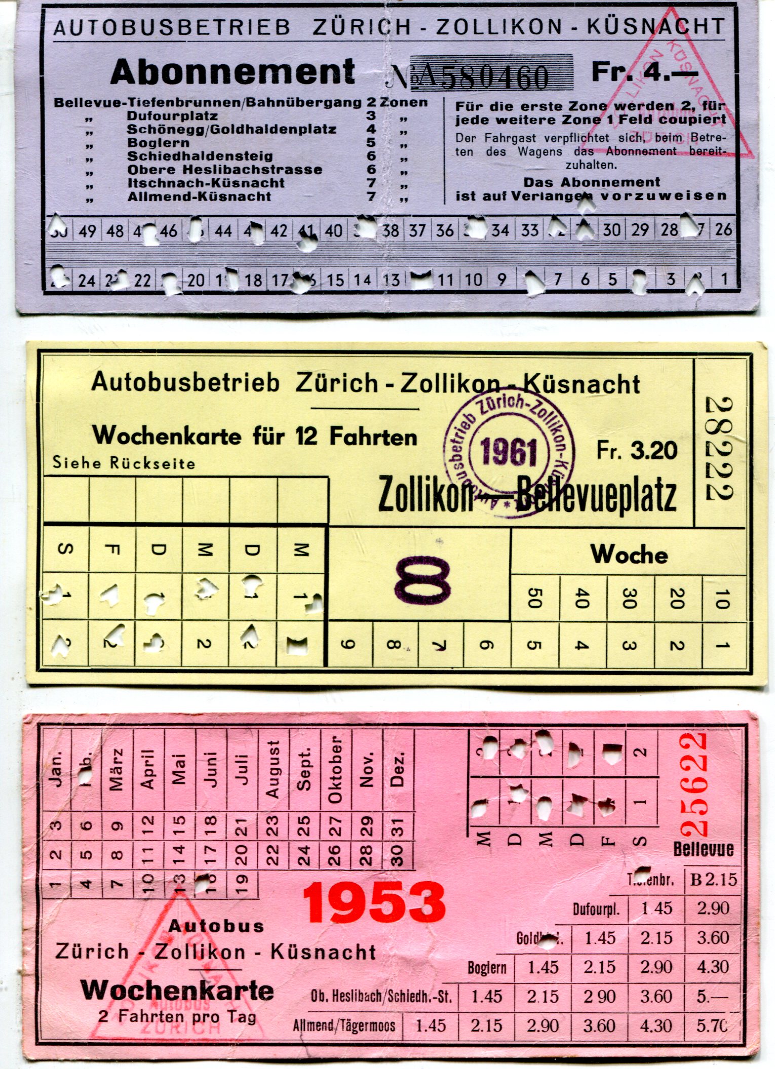 4 Fahrscheine Autobusbetrieb Zürich – Küssnacht