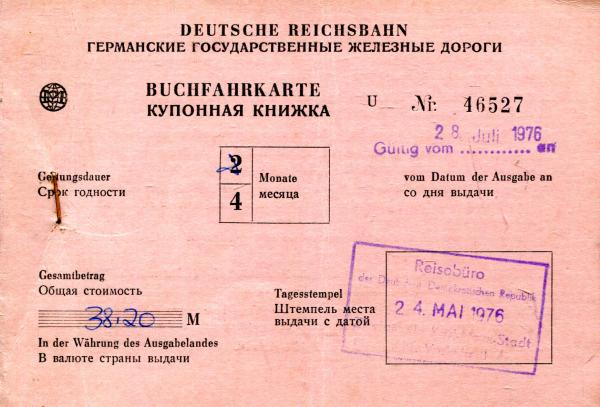 DR Buchfahrkarte Hradec Kralove – Karl Marx Stadt 1976