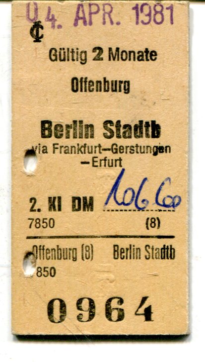 Fahrkarte Offenburg – Berlin Stadtbahn1981