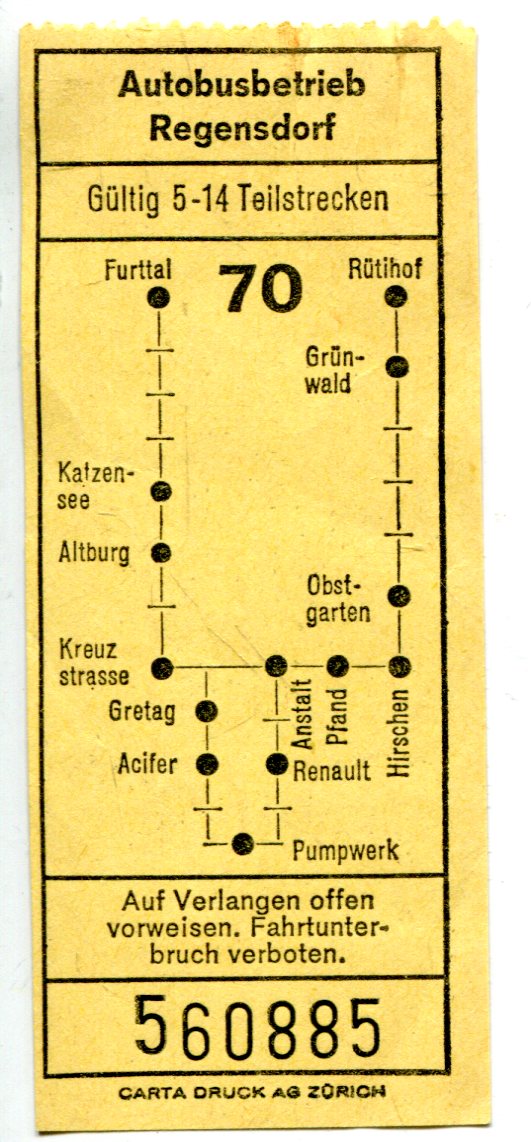 Fahrschein Autobusbetrieb Regensdorf