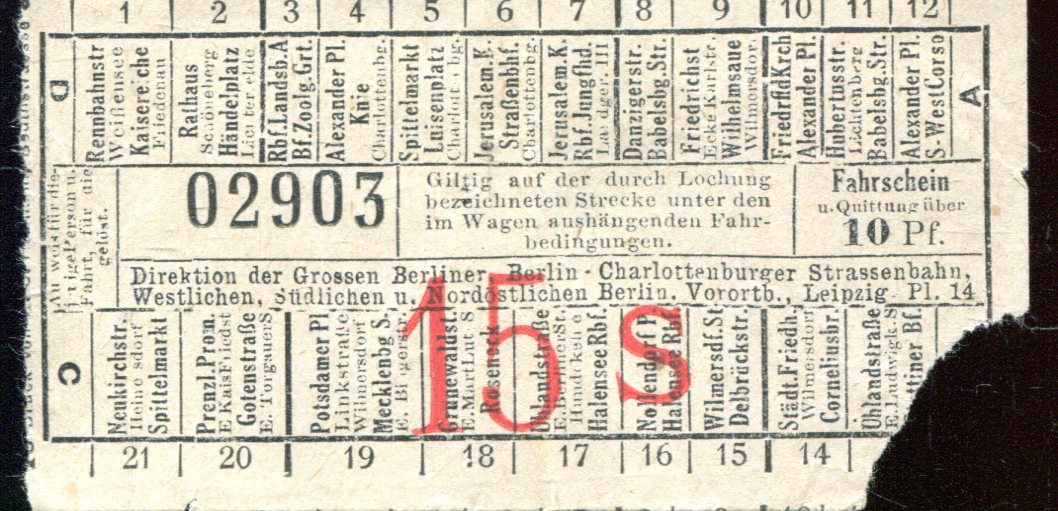 Fahrschein Grosse Berliner Charlottenburger Strassenbahn und Vorortbahnen