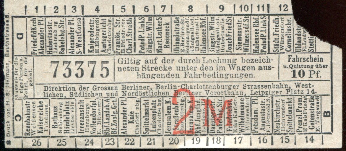 Fahrschein Grosse Berliner Charlottenburger Strassenbahn und Vorortbahnen