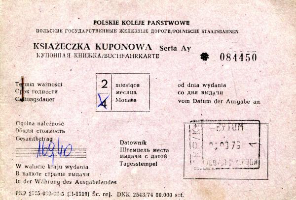 PKP Buchfahrkarte Katowice – Zwickau 1976