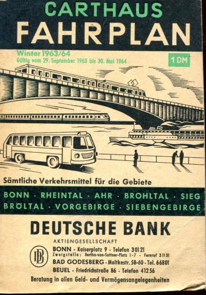 Carthaus Fahrplan Bonn Rheintal Ahr Brohltal Sieg Bröltal Vorgebirge Siebengebirge 1963 / 1964