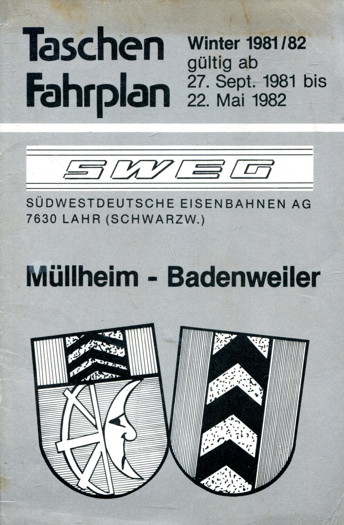 SWEG Taschenfahrplan Müllheim – Badenweiler 1981 / 1982