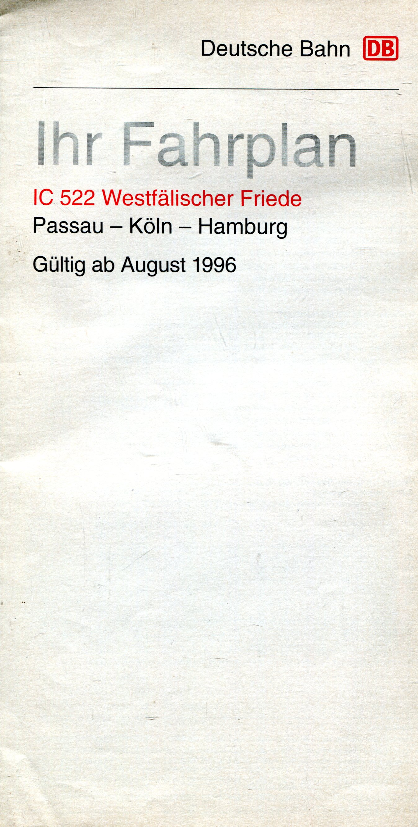 Ihr Fahrplan IC 522 Westfälischer Friede Passau – Hamburg ab August 1996