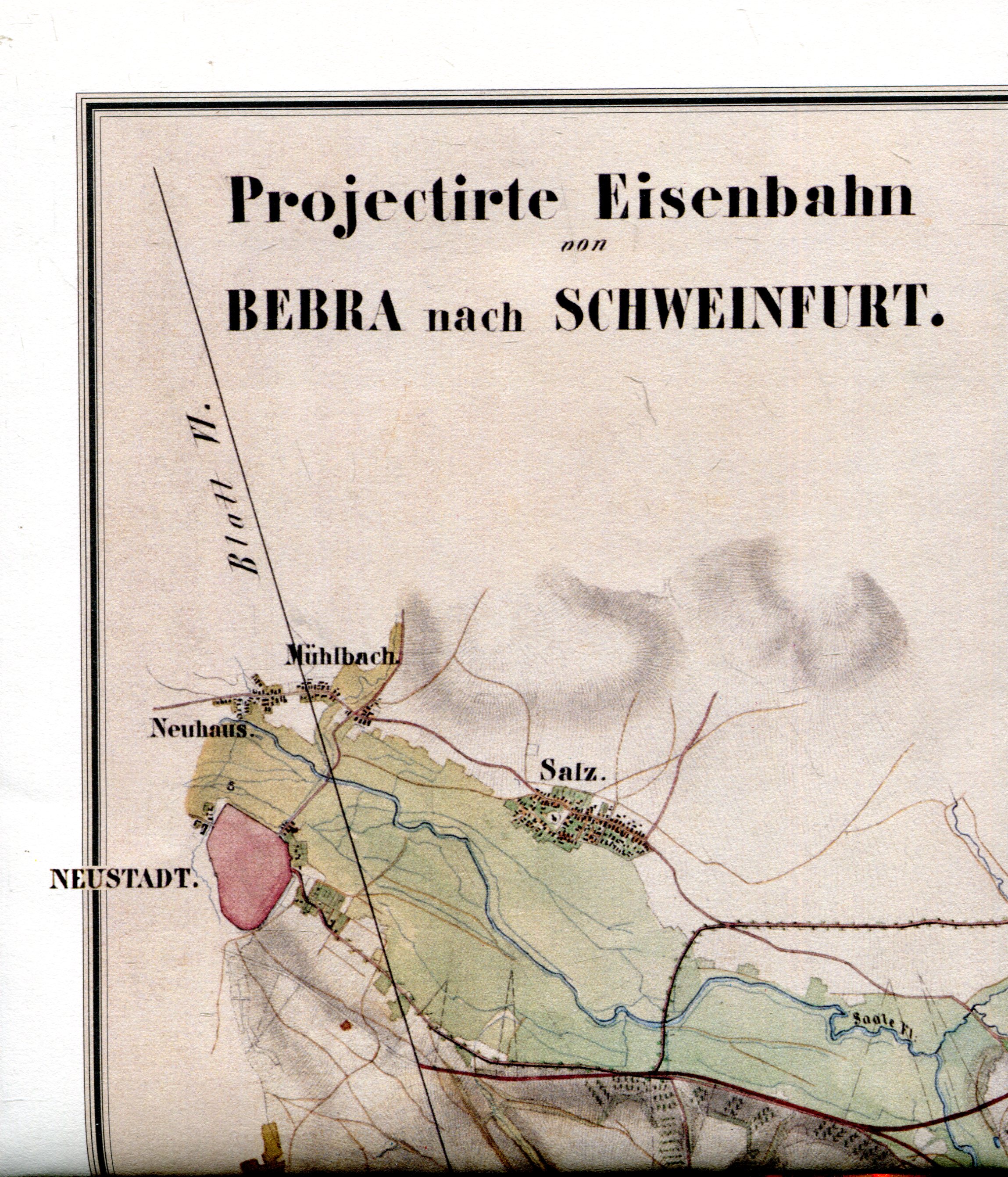 Karte Projektierte Eisenbahn von Bebra nach Schweinfurt (Neustadt - Reiterswiesen) Reprint