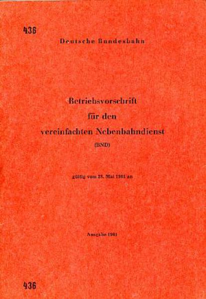 DV 436 Betriebsvorschrift für den vereinfachten Nebenbahndienst 1961 DB