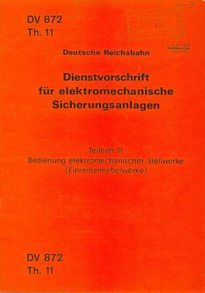 DV 872 Th11 Dienstvorschrift für elektromechanische Sicherungsanlagen - elektromechanischer Stellwerke Einreihenhebelwerke