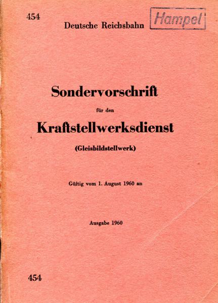 DV 454 Sondervorschrift für den Kraftstellwerksdienst (Gleisbildstellwerk)