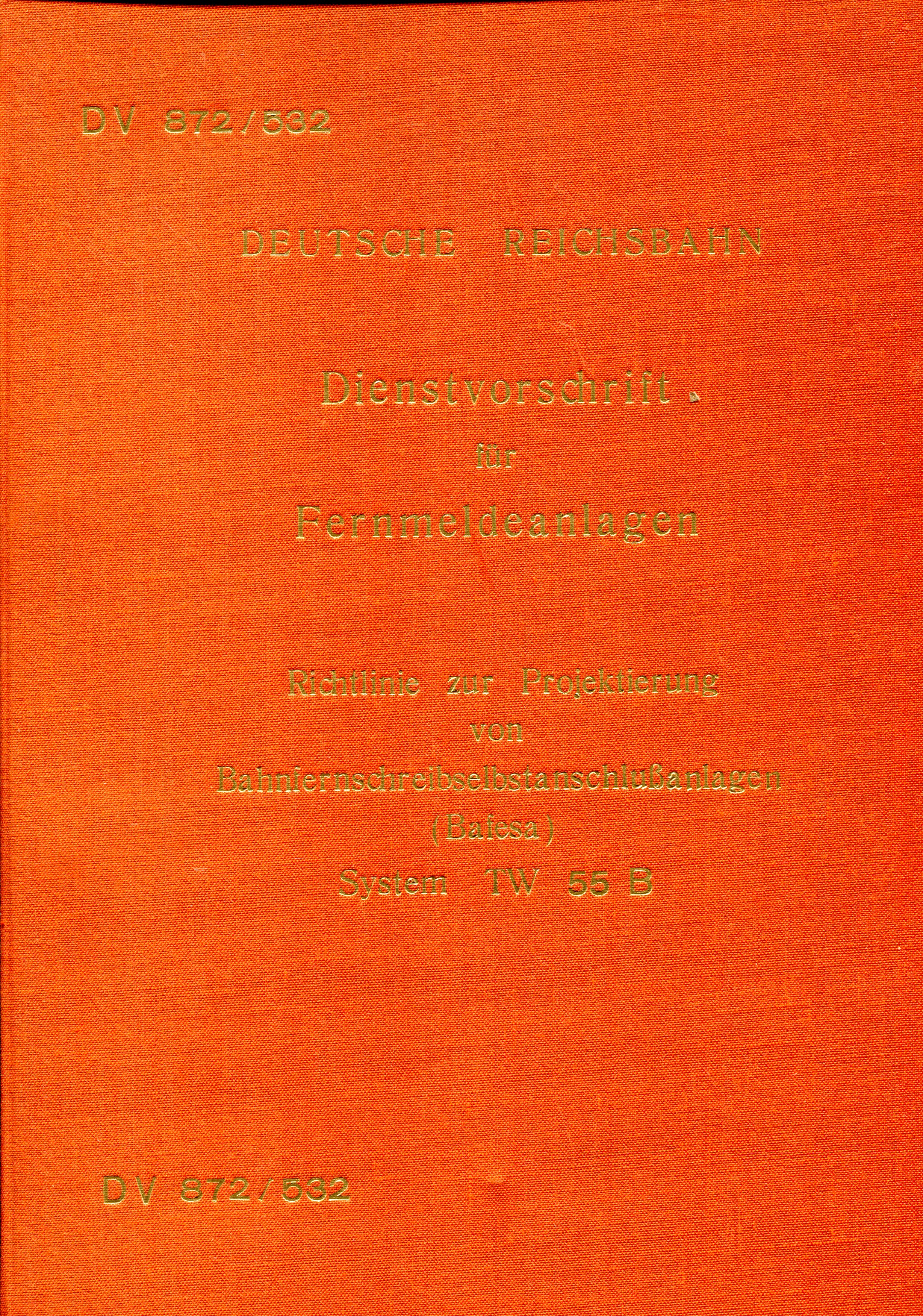 DV 872 / 532 Dienstvorschrift für Fernmeldeanlagen Projektierung von Bahnfernschreibselbstanschlußanlagen Bafesa System TW 55 B