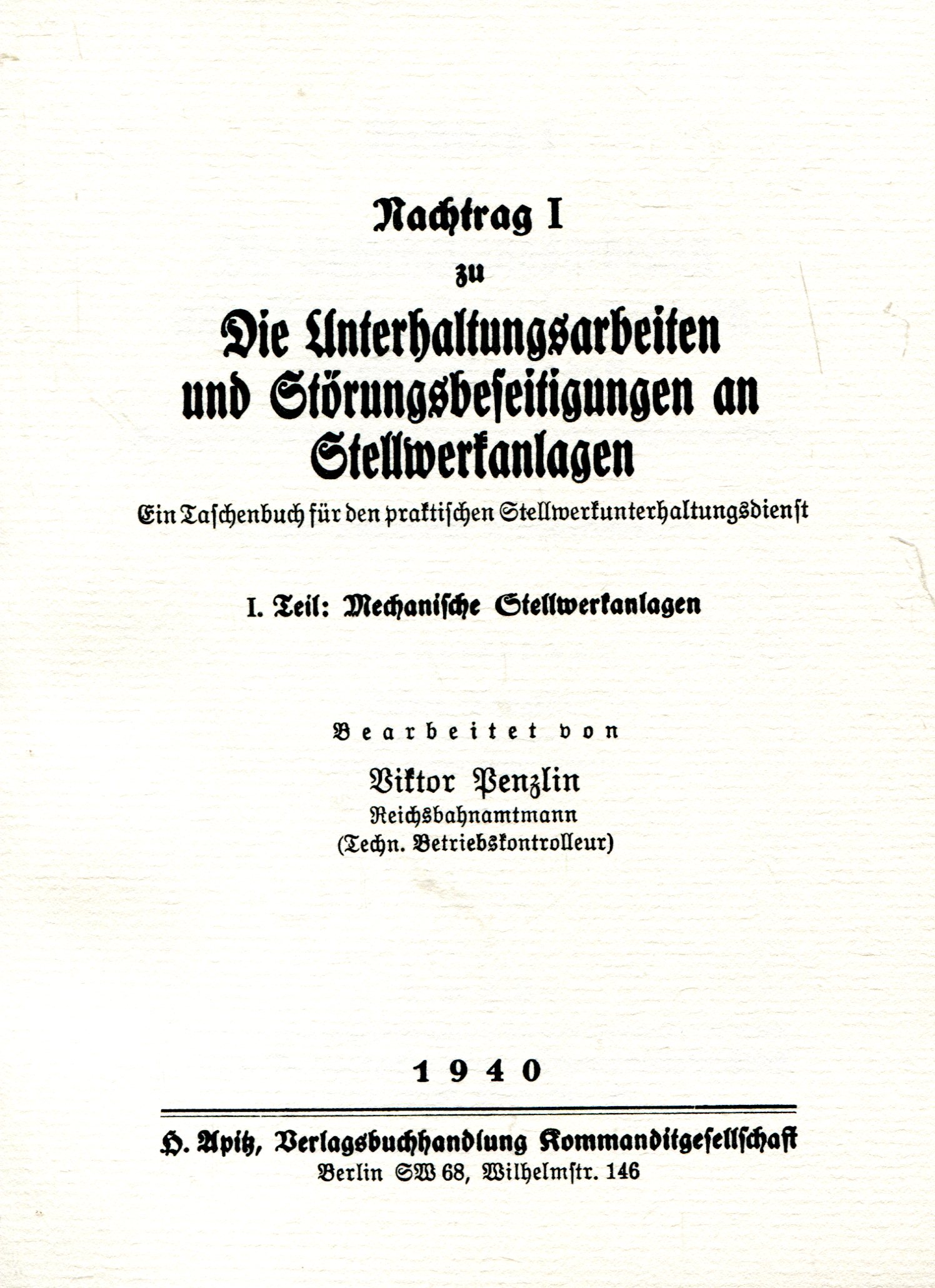 Nachtrag I zu Die Unterhaltungsarbeiten und Störungsbeseitigungen an Stellwerkanlagen Mechanische Stellwerksanlagen 1940 Reprint