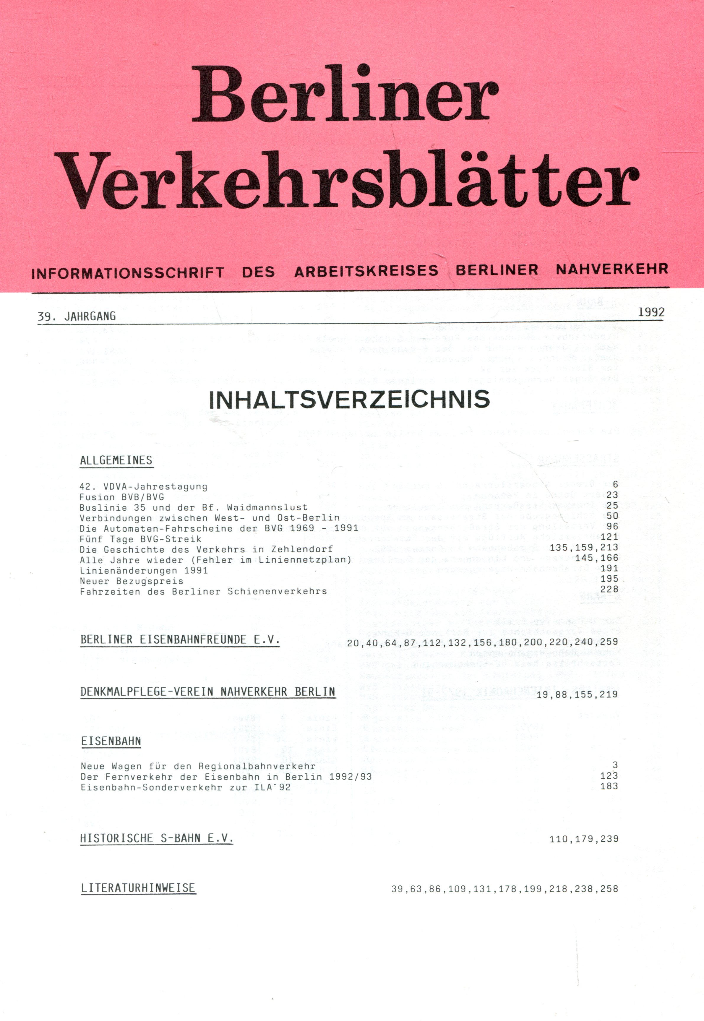 Berliner Verkehrsblätter Inhaltsverzeichnis 1992