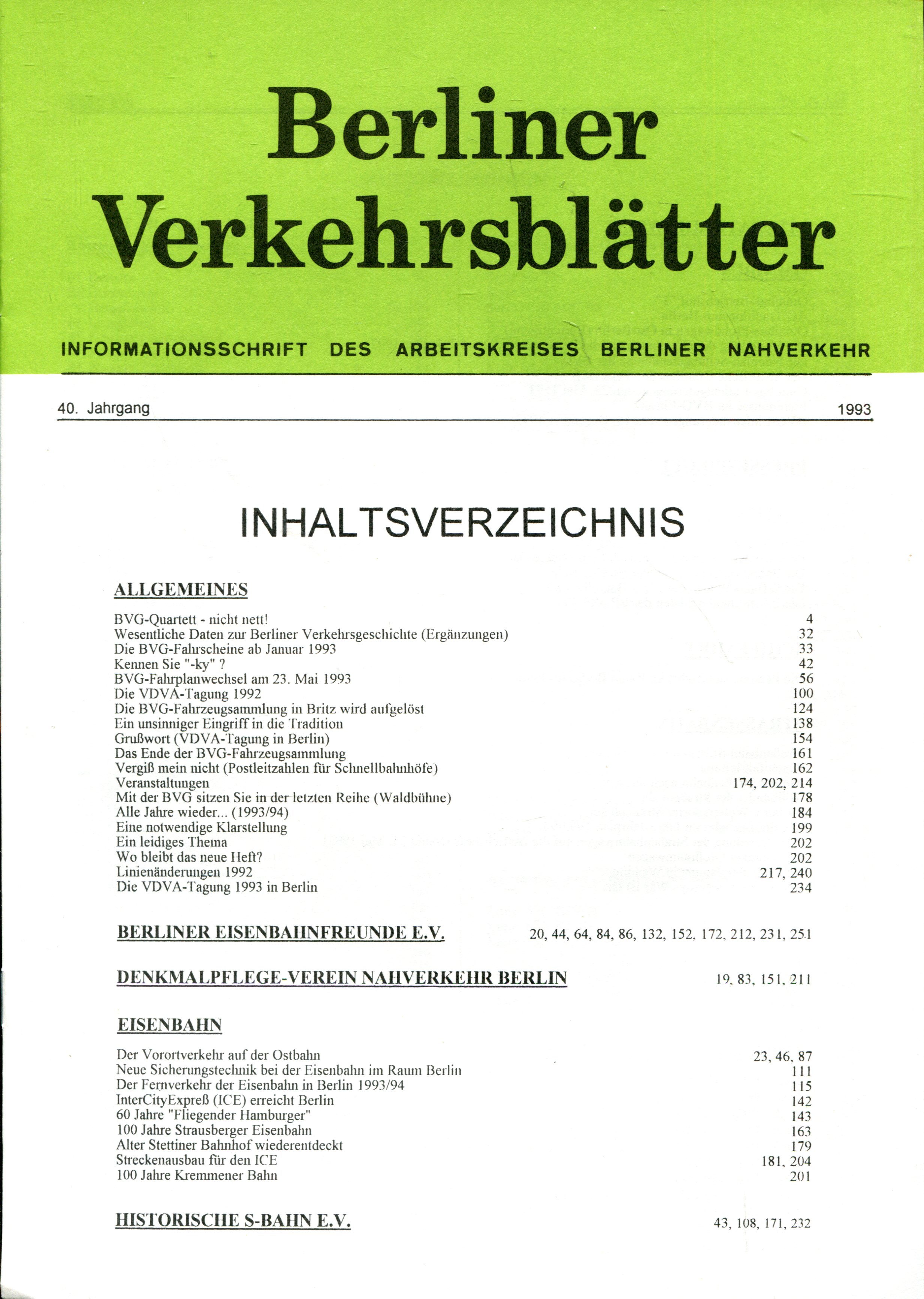 Berliner Verkehrsblätter Inhaltsverzeichnis 1993